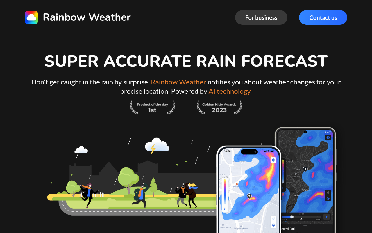 AccéderApplication météo intelligente qui fournit des prévisions de pluie ultra précises selon votre emplacement.